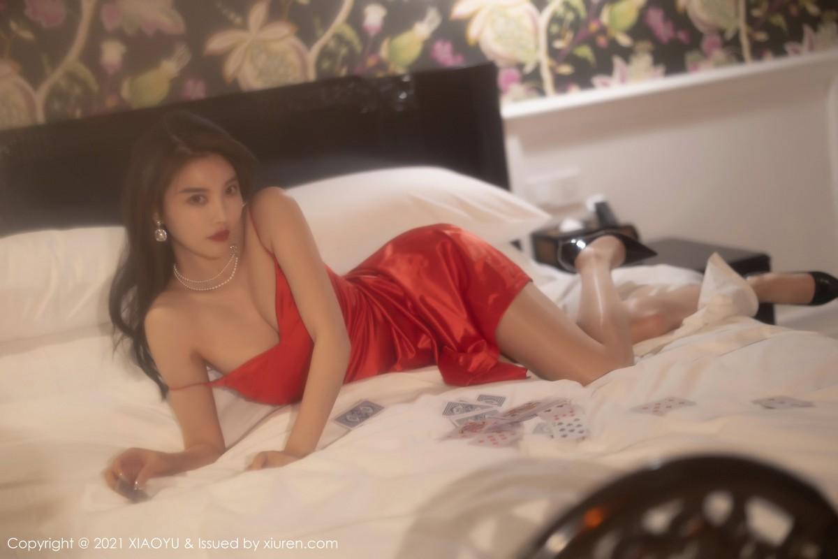【色图】杨晨晨Yome 猩红吊裙荷官女郎装束