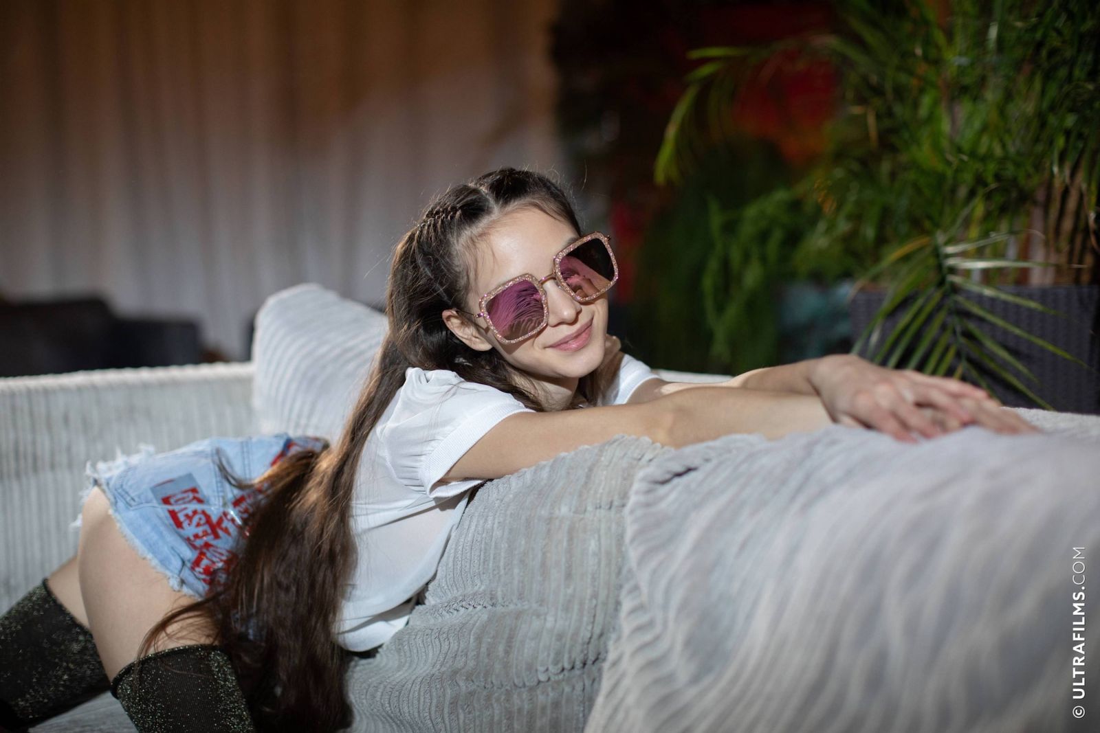 【色图】妹子躺在沙发上睡着了,一场梦湿了一夜