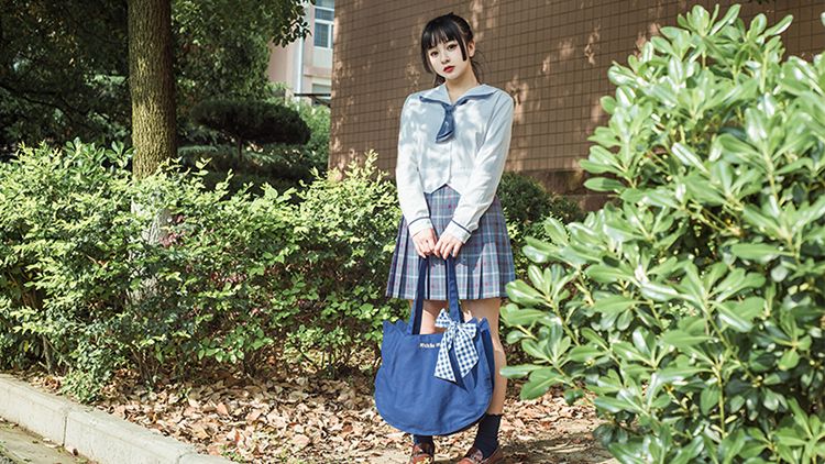 心玉指自己身上的纯白衬衣和黑色背带裙。