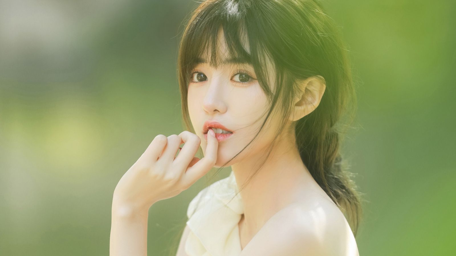 深黑色的长直发披肩,厚重齐刘海遮住额头,整体气质充满活力,散发着领导者的风采。