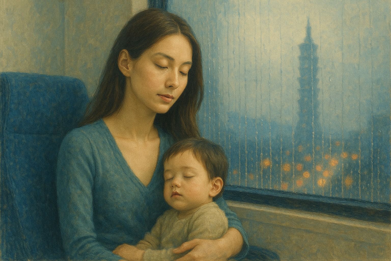她想和孩子一起笑,可眼皮愈来愈沉,身体一整天都在绷紧,如今终於松下来,沉重得几乎抬不起头。