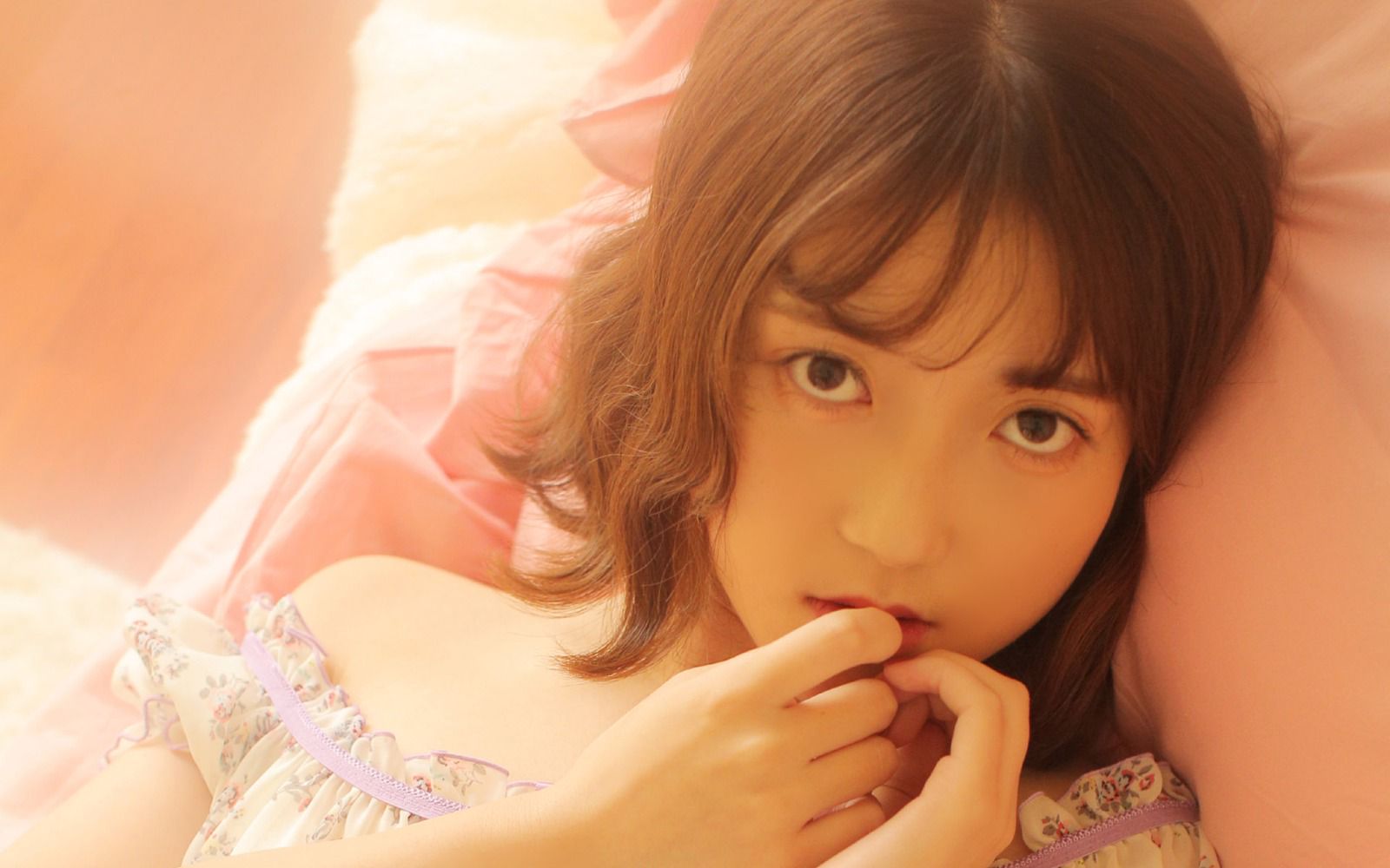 手指磨蹭到自己逼缝,却又不敢太用力。